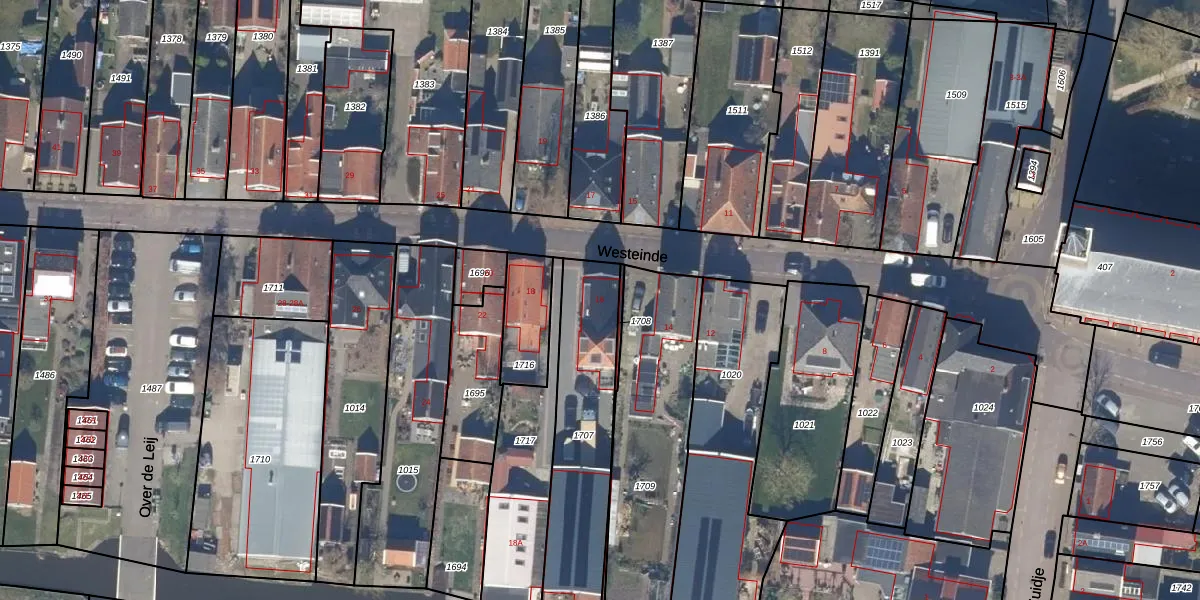 Het perceel waarop Westeinde 16 staat heeft een oppervlakte van 619 m². Dit is een groot perceel. De perceeloppervlakte wordt geregistreerd door het Kadaster. Gedetailleerde informatie over de maten van dit perceel kunt u vinden in het rapport Kadastrale kaart met maatvoering van Westeinde 16.
