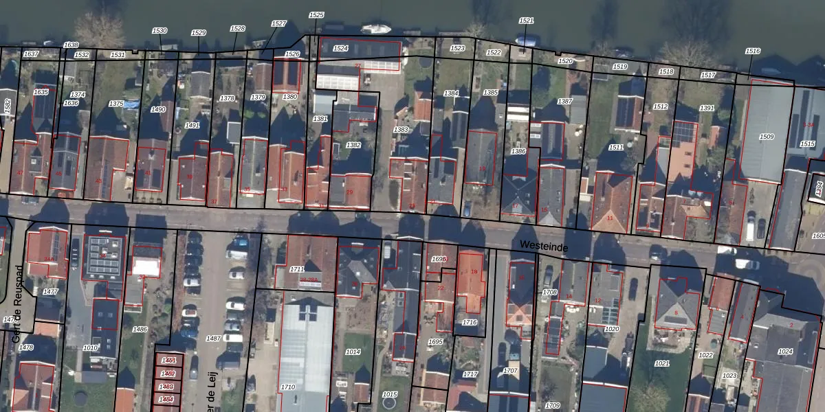 Het perceel waarop Westeinde 25 staat heeft een oppervlakte van 634 m². Dit is een groot perceel. De perceeloppervlakte wordt geregistreerd door het Kadaster. Gedetailleerde informatie over de maten van dit perceel kunt u vinden in het rapport Kadastrale kaart met maatvoering van Westeinde 25.