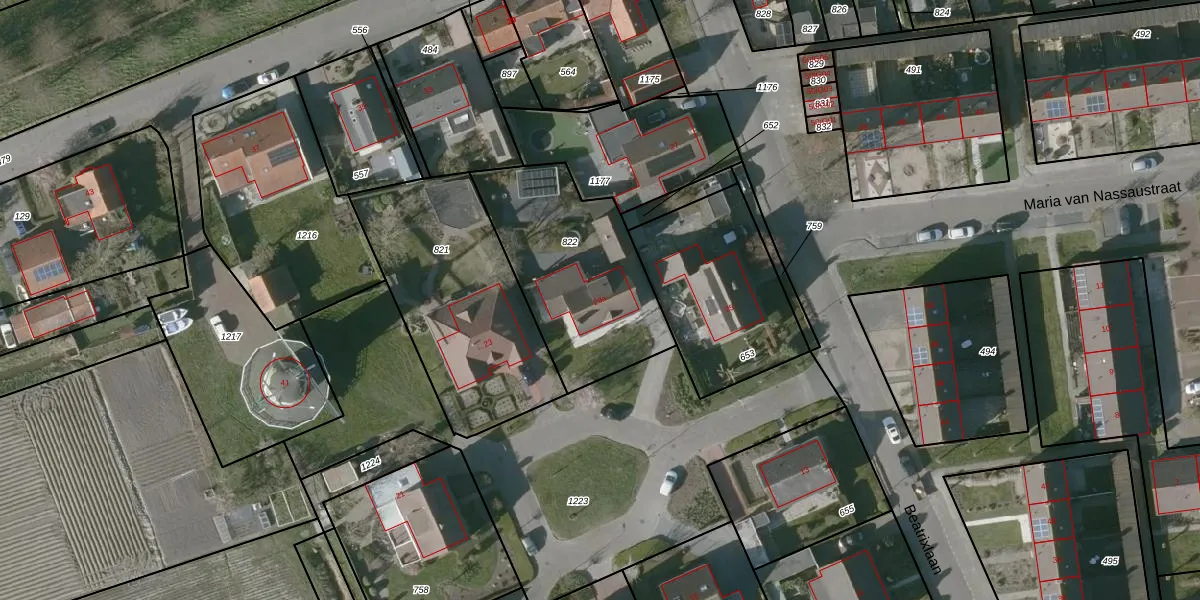 Gebruik de zoekbalk of klik op een perceel voor informatie over de adressen binnen dit perceel.