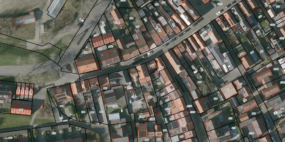 Gebruik de zoekbalk of klik op een perceel voor informatie over de adressen binnen dit perceel.