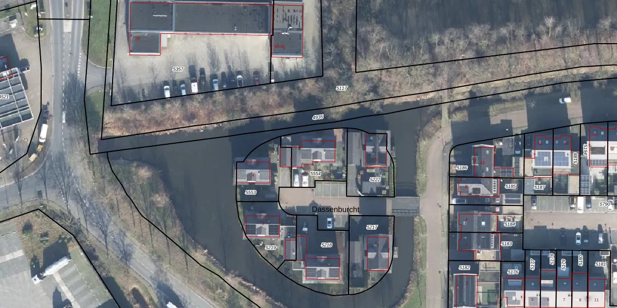 Gebruik de zoekbalk of klik op een perceel voor informatie over de adressen binnen dit perceel.