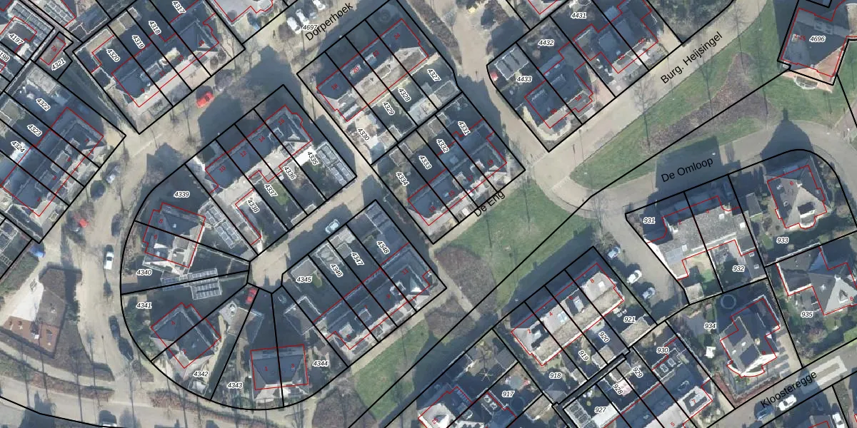 Het perceel waarop De Eng 13 staat heeft een oppervlakte van 182 m². Dit is een middelgroot perceel. De perceeloppervlakte wordt geregistreerd door het Kadaster. Gedetailleerde informatie over de maten van dit perceel kunt u vinden in het rapport Kadastrale kaart met maatvoering van De Eng 13.