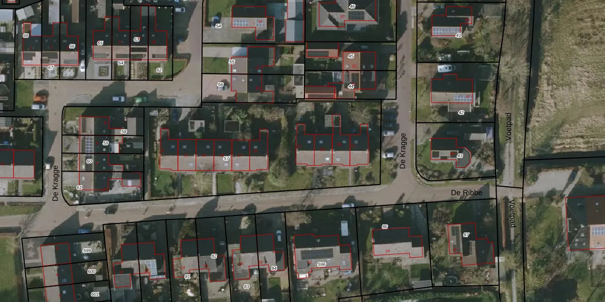 De Ribbe 21 is gelegen op kadastraal perceel ODT00K57. Deze kadastrale aanduiding is uniek en wordt gebruikt door het Kadaster om eigendomsrechten en andere zakelijke rechten vast te leggen. Het perceel maakt onderdeel uit van de kadastrale gemeente Oudetrijne.