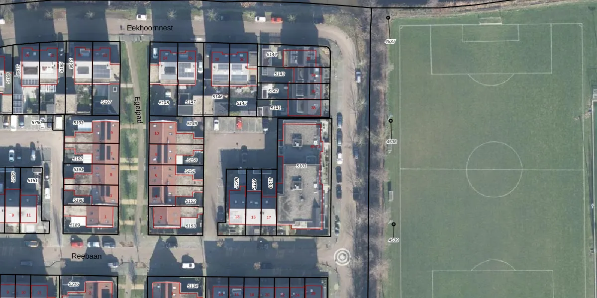 Eekhoornnest 54 is gelegen op kadastraal perceel SPZ00D5103. Deze kadastrale aanduiding is uniek en wordt gebruikt door het Kadaster om eigendomsrechten en andere zakelijke rechten vast te leggen. Het perceel maakt onderdeel uit van de kadastrale gemeente Scherpenzeel.