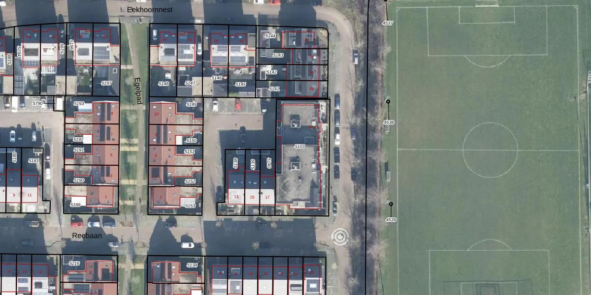 Het perceel waarop Eekhoornnest 56 staat heeft een oppervlakte van 703 m². Dit is een groot perceel. De perceeloppervlakte wordt geregistreerd door het Kadaster. Gedetailleerde informatie over de maten van dit perceel kunt u vinden in het rapport Kadastrale kaart met maatvoering van Eekhoornnest 56.
