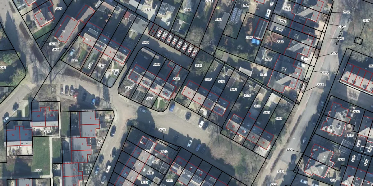Gebruik de zoekbalk of klik op een perceel voor informatie over de adressen binnen dit perceel.