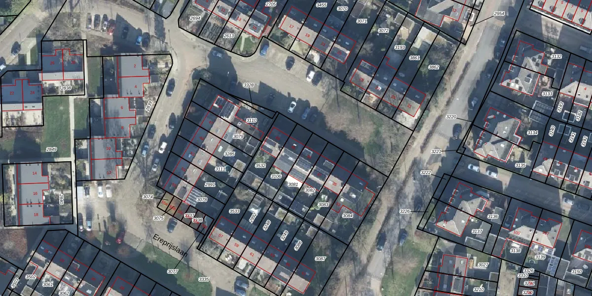 Het perceel waarop Ereprijslaan 41 staat heeft een oppervlakte van 162 m². Dit is een middelgroot perceel. De perceeloppervlakte wordt geregistreerd door het Kadaster. Gedetailleerde informatie over de maten van dit perceel kunt u vinden in het rapport Kadastrale kaart met maatvoering van Ereprijslaan 41.