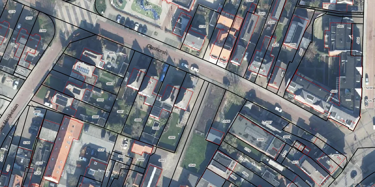 Het perceel waarop Glashorst 9 staat heeft een oppervlakte van 433 m². Dit is een groot perceel. De perceeloppervlakte wordt geregistreerd door het Kadaster. Gedetailleerde informatie over de maten van dit perceel kunt u vinden in het rapport Kadastrale kaart met maatvoering van Glashorst 9.