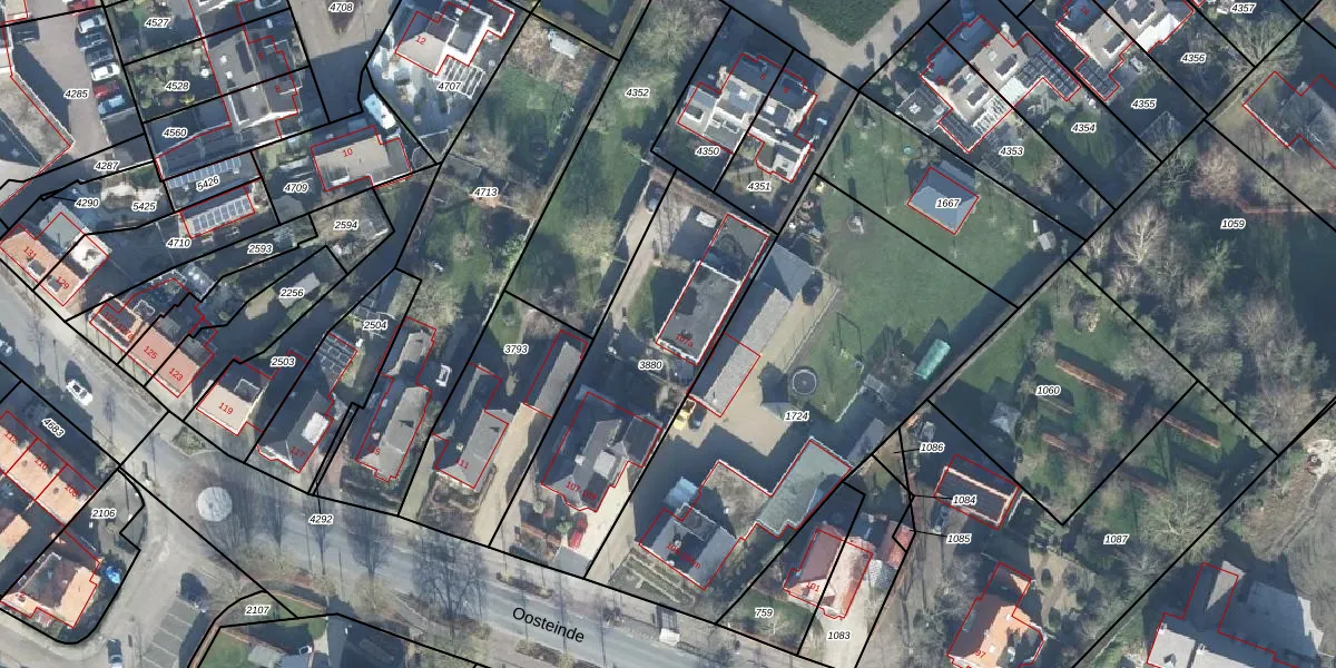 Het perceel waarop Oosteinde 107-a staat heeft een oppervlakte van 1010 m². Dit is een zeer groot perceel. De perceeloppervlakte wordt geregistreerd door het Kadaster. Gedetailleerde informatie over de maten van dit perceel kunt u vinden in het rapport Kadastrale kaart met maatvoering van Oosteinde 107-a.
