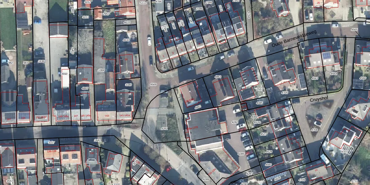 Het adres ligt op het perceel SPZ00-D-4862, dat zich in de kadastrale gemeente Scherpenzeel bevindt. Het perceel is 267 m² groot. Dat is kleiner dan de gemiddelde perceeloppervlakte in Scherpenzeel, dat op 2433,05 m² ligt. Het grootste perceel in de kadastrale gemeente is 13,5 ha. Het kleinste perceel heeft een oppervlakte van 0 m². Op het perceel liggen in totaal 4 adressen. De huidige grenzen van het perceel zijn digitaal in de Basisregistratie Kadaster (BRK) geregistreerd op 18-09-2002.