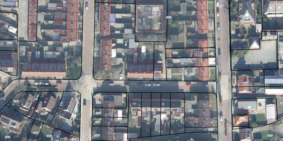 Het perceel waarop Prinses Beatrixlaan 6 staat heeft een oppervlakte van 1937 m². Dit is een zeer groot perceel. De perceeloppervlakte wordt geregistreerd door het Kadaster. Gedetailleerde informatie over de maten van dit perceel kunt u vinden in het rapport Kadastrale kaart met maatvoering van Prinses Beatrixlaan 6.