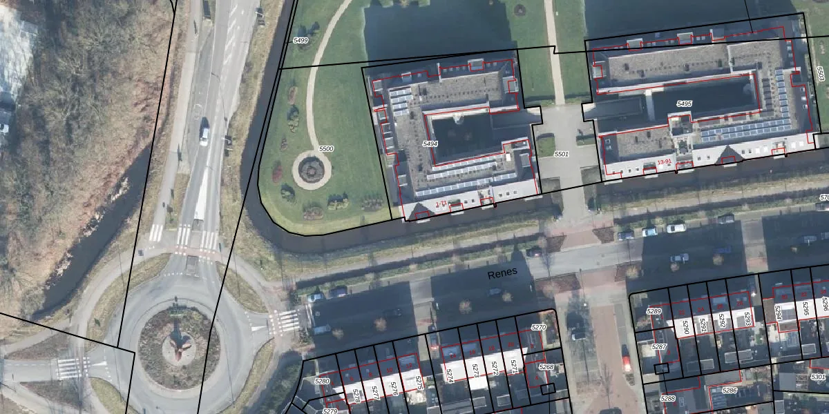 Het perceel waarop Renes 37 staat heeft een oppervlakte van 1360 m². Dit is een zeer groot perceel. De perceeloppervlakte wordt geregistreerd door het Kadaster. Gedetailleerde informatie over de maten van dit perceel kunt u vinden in het rapport Kadastrale kaart met maatvoering van Renes 37.