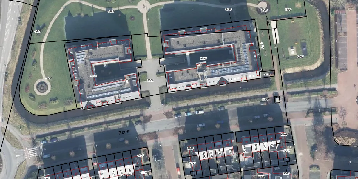 Het perceel waarop Renes 85 staat heeft een oppervlakte van 1550 m². Dit is een zeer groot perceel. De perceeloppervlakte wordt geregistreerd door het Kadaster. Gedetailleerde informatie over de maten van dit perceel kunt u vinden in het rapport Kadastrale kaart met maatvoering van Renes 85.
