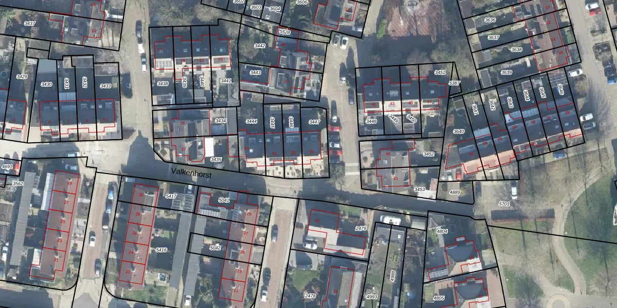 Het perceel waarop Valkenhorst 35 staat heeft een oppervlakte van 189 m². Dit is een middelgroot perceel. De perceeloppervlakte wordt geregistreerd door het Kadaster. Gedetailleerde informatie over de maten van dit perceel kunt u vinden in het rapport Kadastrale kaart met maatvoering van Valkenhorst 35.