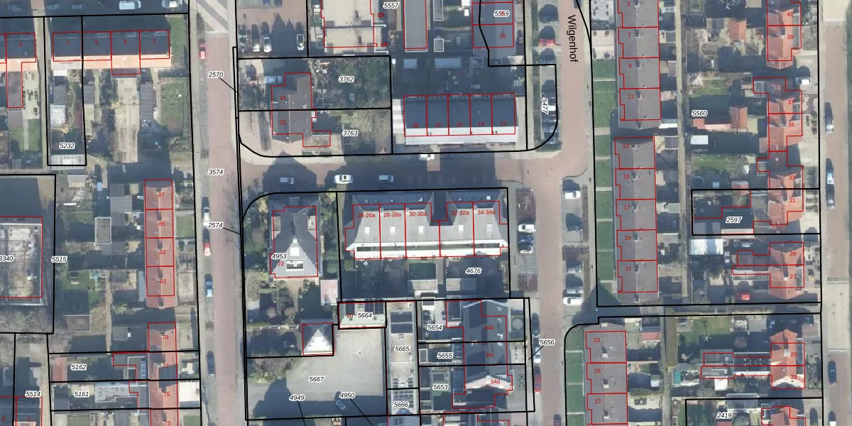 Het perceel waarop Wilgenhof 30 staat heeft een oppervlakte van 1050 m². Dit is een zeer groot perceel. De perceeloppervlakte wordt geregistreerd door het Kadaster. Gedetailleerde informatie over de maten van dit perceel kunt u vinden in het rapport Kadastrale kaart met maatvoering van Wilgenhof 30.