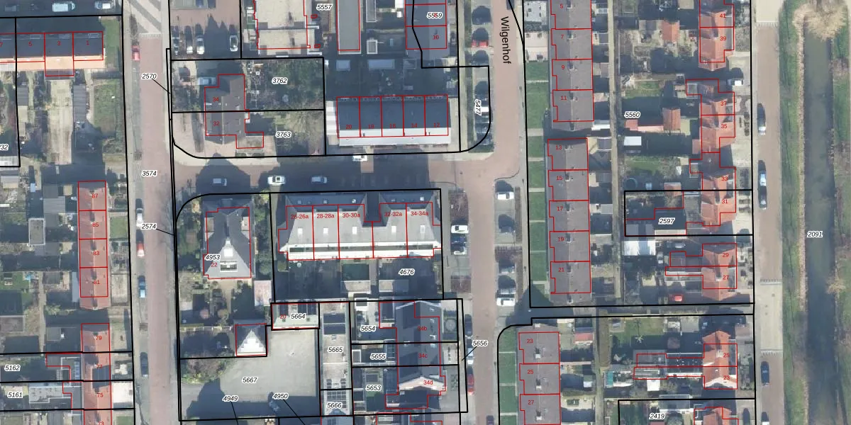 Het perceel waarop Wilgenhof 34 staat heeft een oppervlakte van 1050 m². Dit is een zeer groot perceel. De perceeloppervlakte wordt geregistreerd door het Kadaster. Gedetailleerde informatie over de maten van dit perceel kunt u vinden in het rapport Kadastrale kaart met maatvoering van Wilgenhof 34.