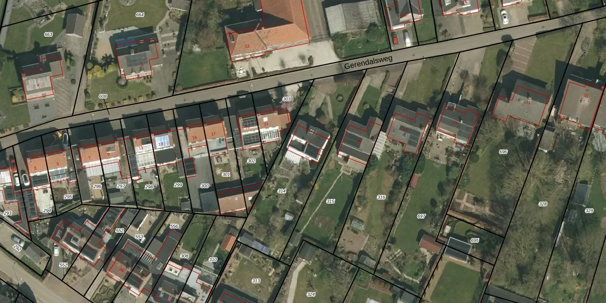 Gerendalsweg 23 is gelegen op kadastraal perceel MGT02D314. Deze kadastrale aanduiding is uniek en wordt gebruikt door het Kadaster om eigendomsrechten en andere zakelijke rechten vast te leggen. Het perceel maakt onderdeel uit van de kadastrale gemeente Margraten.