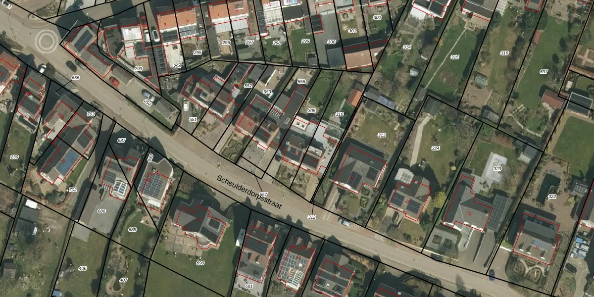 Het perceel waarop Scheulderdorpsstraat 21 staat heeft een oppervlakte van 352 m². Dit is een groot perceel. De perceeloppervlakte wordt geregistreerd door het Kadaster. Gedetailleerde informatie over de maten van dit perceel kunt u vinden in het rapport Kadastrale kaart met maatvoering van Scheulderdorpsstraat 21.