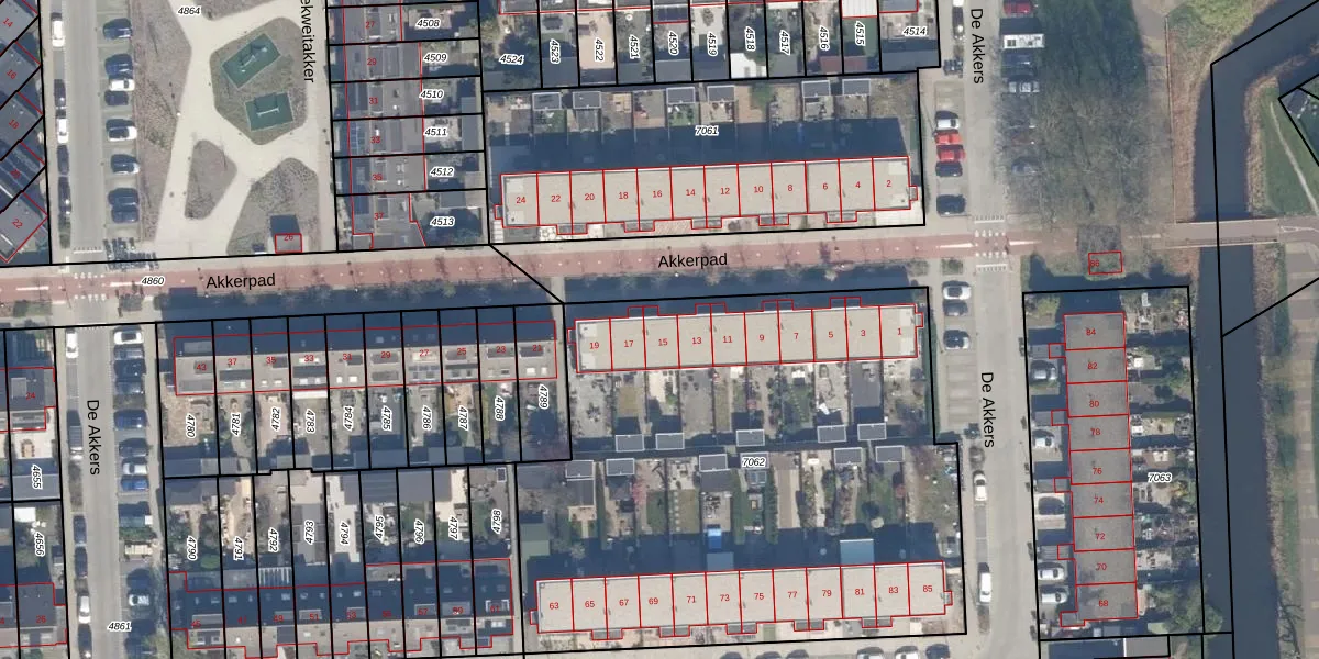 Het perceel waarop Akkerpad 15 staat heeft een oppervlakte van 3260 m². Dit is een zeer groot perceel. De perceeloppervlakte wordt geregistreerd door het Kadaster. Gedetailleerde informatie over de maten van dit perceel kunt u vinden in het rapport Kadastrale kaart met maatvoering van Akkerpad 15.