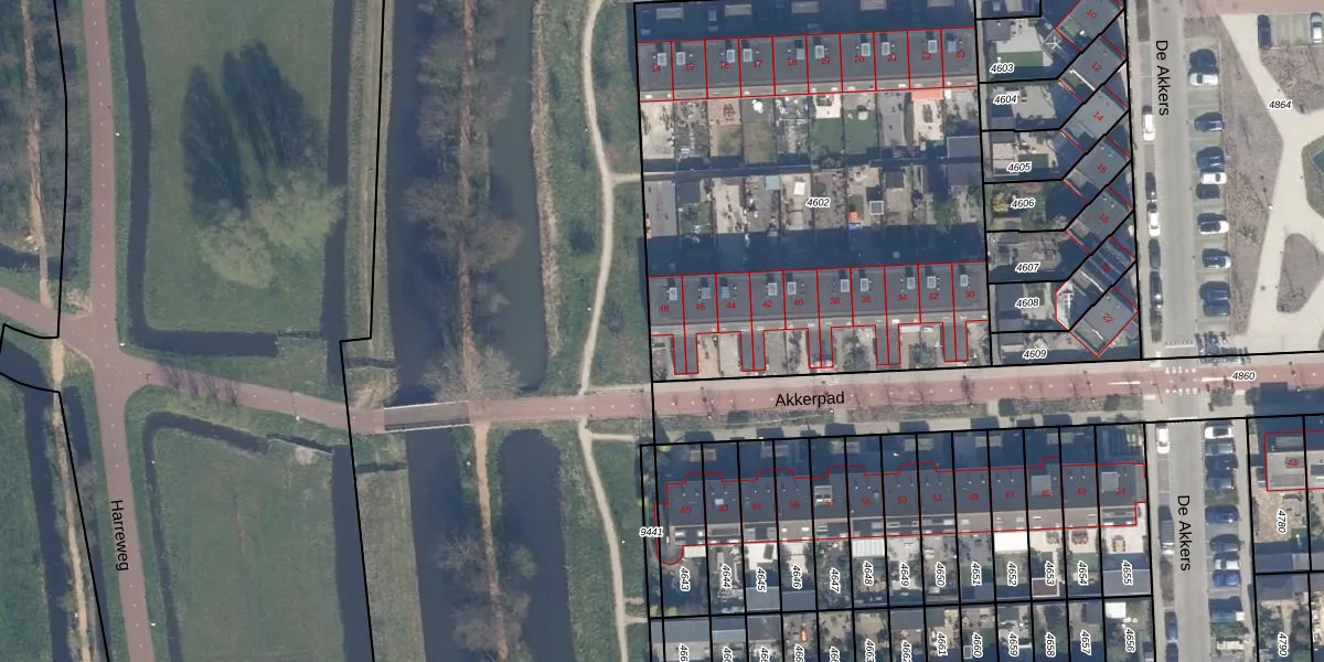 Akkerpad 48 is gelegen op kadastraal perceel SDM01Q4602. Deze kadastrale aanduiding is uniek en wordt gebruikt door het Kadaster om eigendomsrechten en andere zakelijke rechten vast te leggen. Het perceel maakt onderdeel uit van de kadastrale gemeente Schiedam.