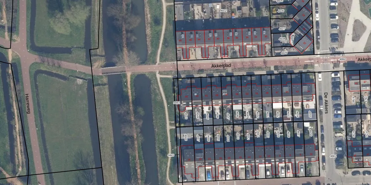 Het perceel waarop Akkerpad 65 staat heeft een oppervlakte van 187 m². Dit is een middelgroot perceel. De perceeloppervlakte wordt geregistreerd door het Kadaster. Gedetailleerde informatie over de maten van dit perceel kunt u vinden in het rapport Kadastrale kaart met maatvoering van Akkerpad 65.