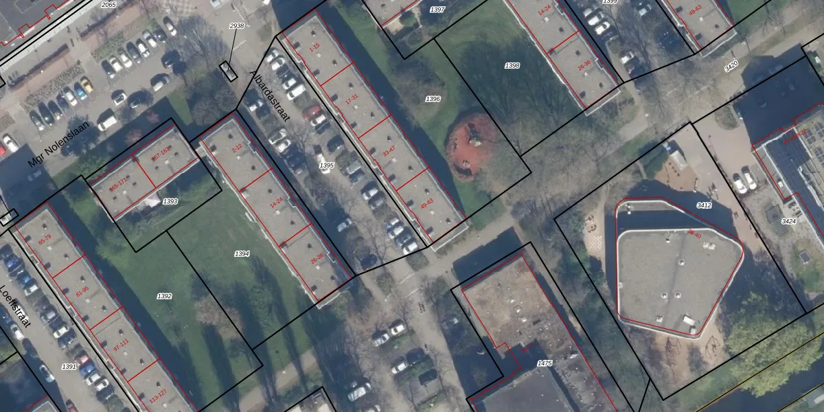 Albardastraat 53 is gelegen op kadastraal perceel SDM01H1396. Deze kadastrale aanduiding is uniek en wordt gebruikt door het Kadaster om eigendomsrechten en andere zakelijke rechten vast te leggen. Het perceel maakt onderdeel uit van de kadastrale gemeente Schiedam.