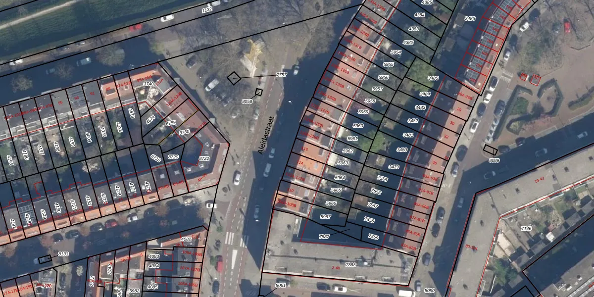 Aleidastraat 116 is gelegen op kadastraal perceel SDM01M5963. Deze kadastrale aanduiding is uniek en wordt gebruikt door het Kadaster om eigendomsrechten en andere zakelijke rechten vast te leggen. Het perceel maakt onderdeel uit van de kadastrale gemeente Schiedam.