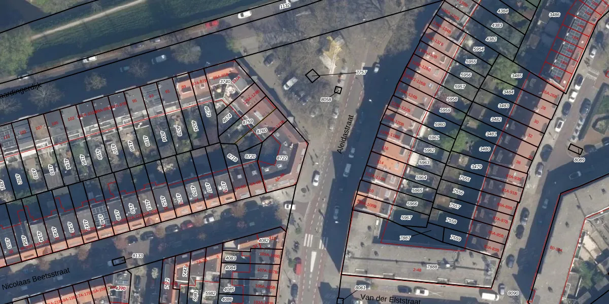 Het perceel waarop Aleidastraat 121-A staat heeft een oppervlakte van 263 m². Dit is een middelgroot perceel. De perceeloppervlakte wordt geregistreerd door het Kadaster. Gedetailleerde informatie over de maten van dit perceel kunt u vinden in het rapport Kadastrale kaart met maatvoering van Aleidastraat 121-A.