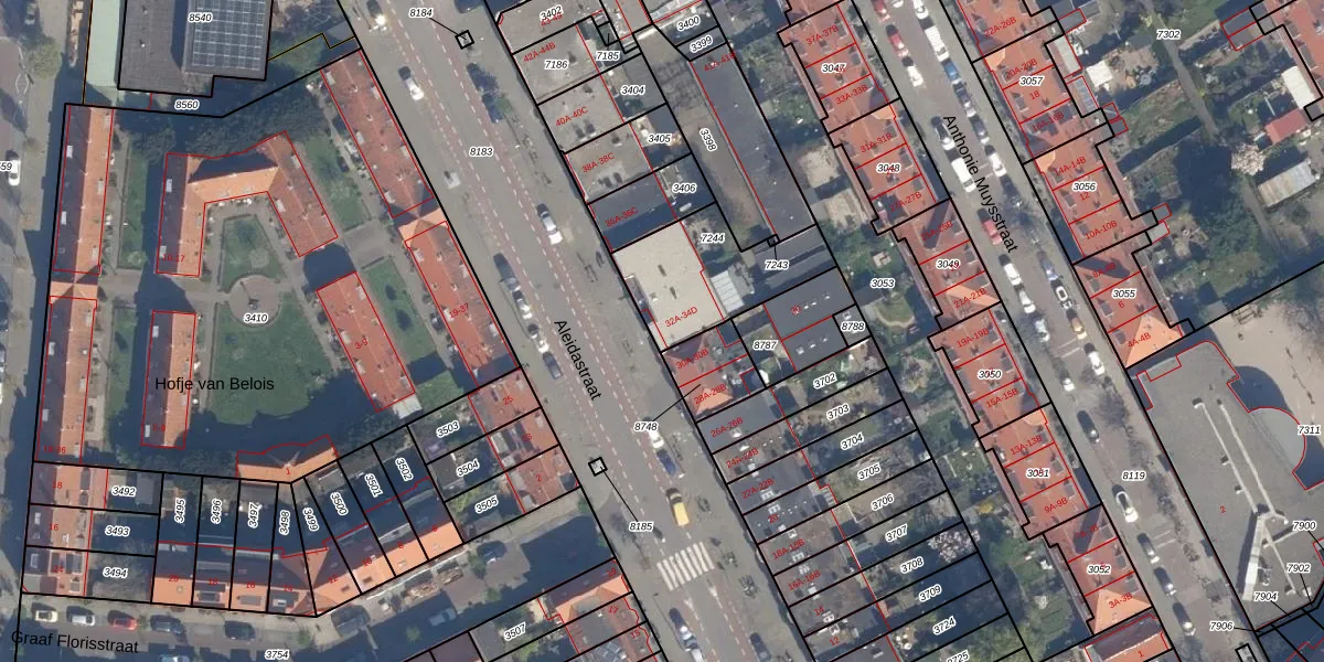 Het perceel waarop Aleidastraat 32-C staat heeft een oppervlakte van 390 m². Dit is een groot perceel. De perceeloppervlakte wordt geregistreerd door het Kadaster. Gedetailleerde informatie over de maten van dit perceel kunt u vinden in het rapport Kadastrale kaart met maatvoering van Aleidastraat 32-C.