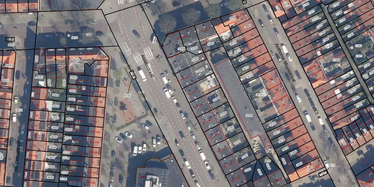Het perceel waarop Aleidastraat 60-A staat heeft een oppervlakte van 163 m². Dit is een middelgroot perceel. De perceeloppervlakte wordt geregistreerd door het Kadaster. Gedetailleerde informatie over de maten van dit perceel kunt u vinden in het rapport Kadastrale kaart met maatvoering van Aleidastraat 60-A.