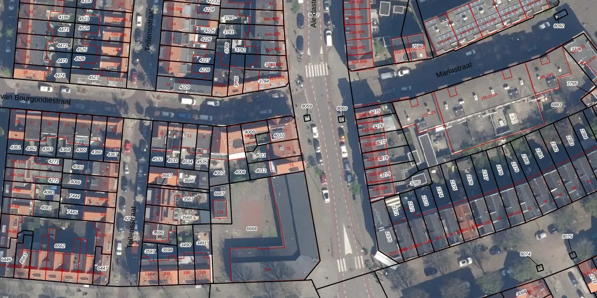 Het perceel waarop Aleidastraat 75 staat heeft een oppervlakte van 97 m². Dit is een klein perceel. De perceeloppervlakte wordt geregistreerd door het Kadaster. Gedetailleerde informatie over de maten van dit perceel kunt u vinden in het rapport Kadastrale kaart met maatvoering van Aleidastraat 75.