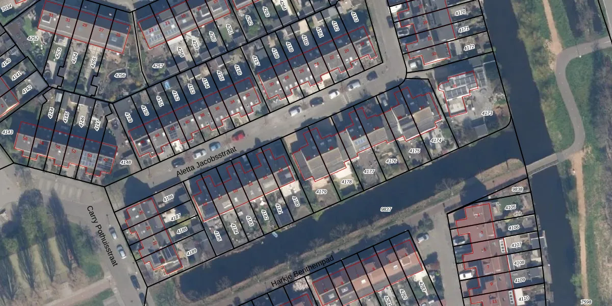 Gebruik de zoekbalk of klik op een perceel voor informatie over de adressen binnen dit perceel.