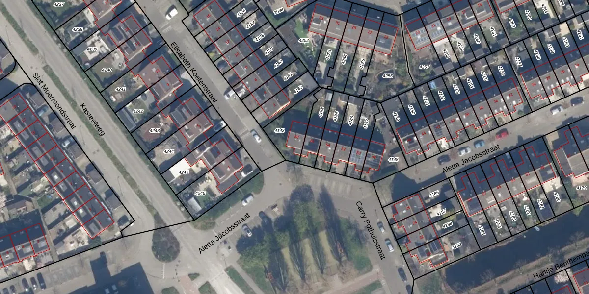 Gebruik de zoekbalk of klik op een perceel voor informatie over de adressen binnen dit perceel.