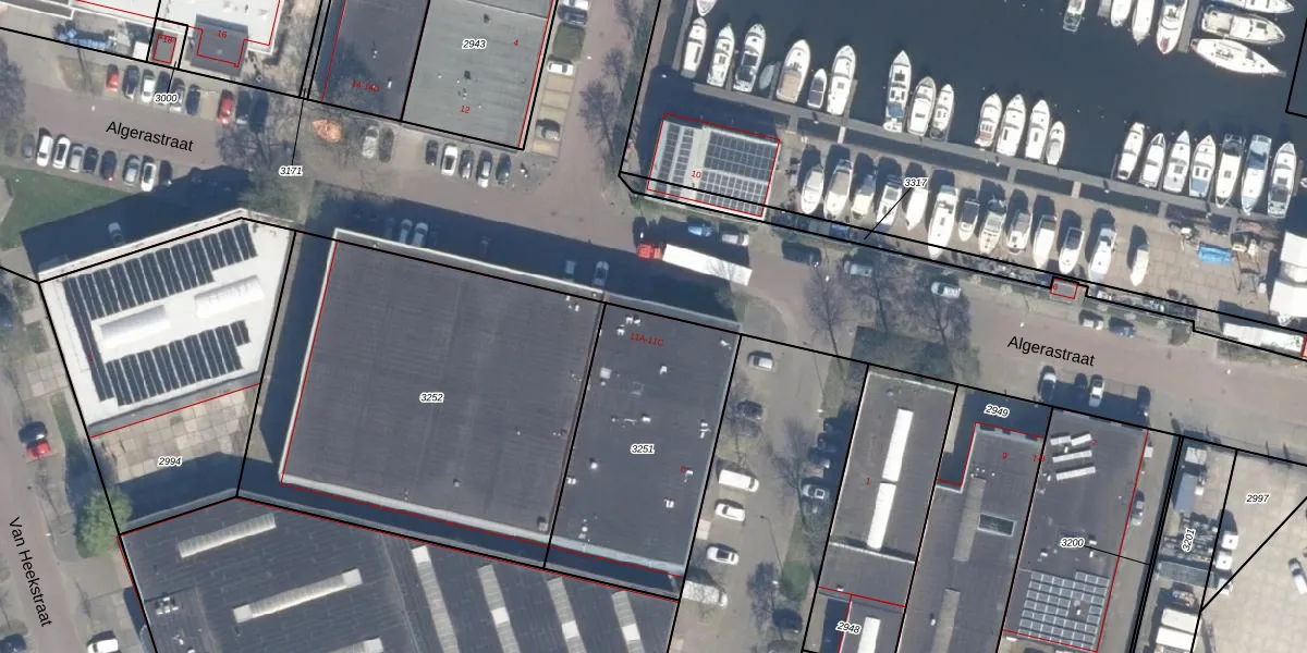 Algerastraat 11-A is gelegen op kadastraal perceel SDM01P3251. Deze kadastrale aanduiding is uniek en wordt gebruikt door het Kadaster om eigendomsrechten en andere zakelijke rechten vast te leggen. Het perceel maakt onderdeel uit van de kadastrale gemeente Schiedam.
