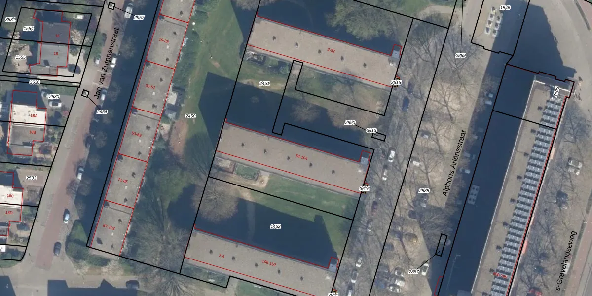 Het perceel waarop Alphons Ariënsstraat 68 staat heeft een oppervlakte van 3289 m². Dit is een zeer groot perceel. De perceeloppervlakte wordt geregistreerd door het Kadaster. Gedetailleerde informatie over de maten van dit perceel kunt u vinden in het rapport Kadastrale kaart met maatvoering van Alphons Ariënsstraat 68.