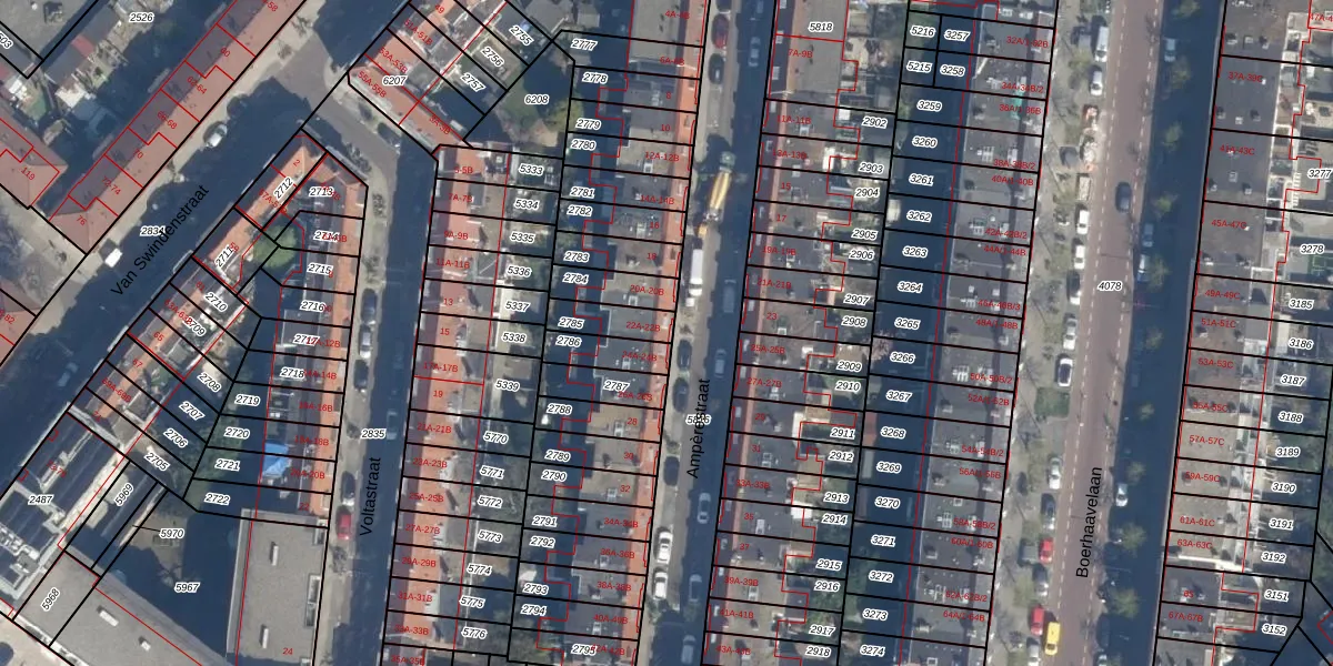 Het perceel waarop Ampèrestraat 22-B staat heeft een oppervlakte van 96 m². Dit is een klein perceel. De perceeloppervlakte wordt geregistreerd door het Kadaster. Gedetailleerde informatie over de maten van dit perceel kunt u vinden in het rapport Kadastrale kaart met maatvoering van Ampèrestraat 22-B.