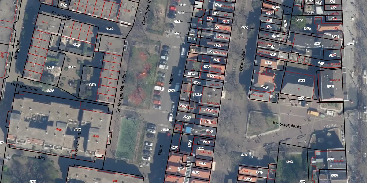 Het perceel waarop Baan 42-B staat heeft een oppervlakte van 49 m². Dit is een klein perceel. De perceeloppervlakte wordt geregistreerd door het Kadaster. Gedetailleerde informatie over de maten van dit perceel kunt u vinden in het rapport Kadastrale kaart met maatvoering van Baan 42-B.