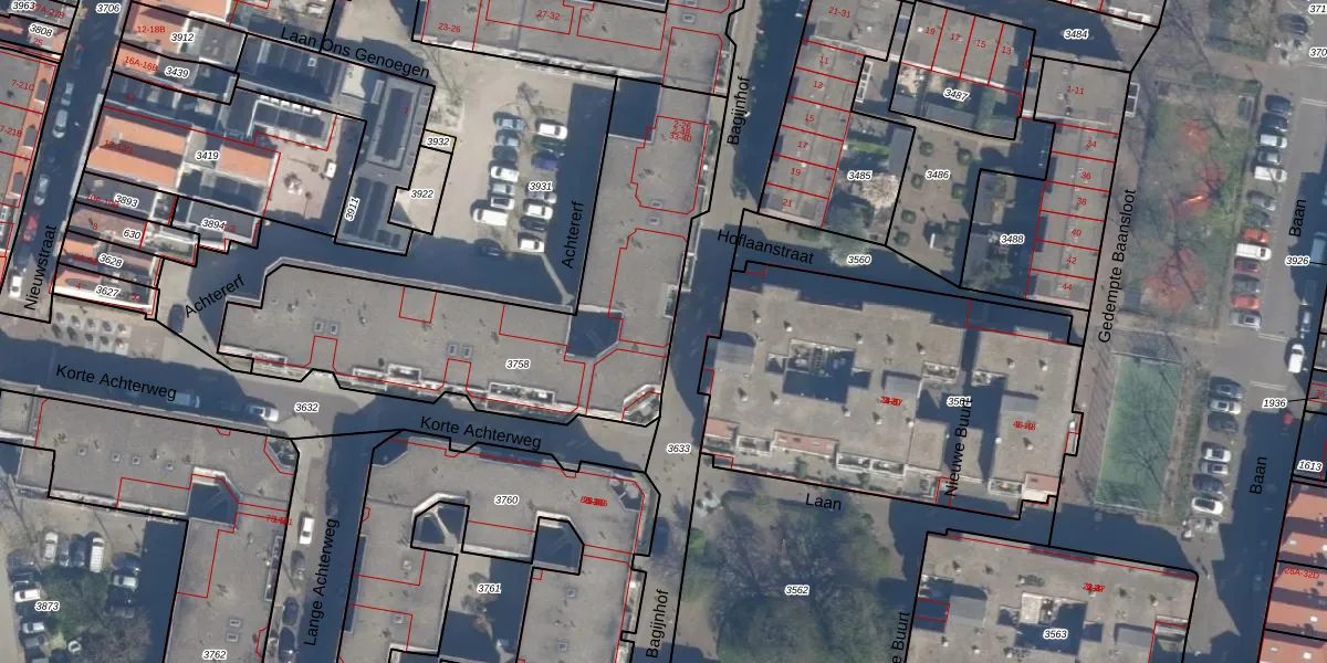 Het perceel waarop Bagijnhof 24 staat heeft een oppervlakte van 1590 m². Dit is een zeer groot perceel. De perceeloppervlakte wordt geregistreerd door het Kadaster. Gedetailleerde informatie over de maten van dit perceel kunt u vinden in het rapport Kadastrale kaart met maatvoering van Bagijnhof 24.