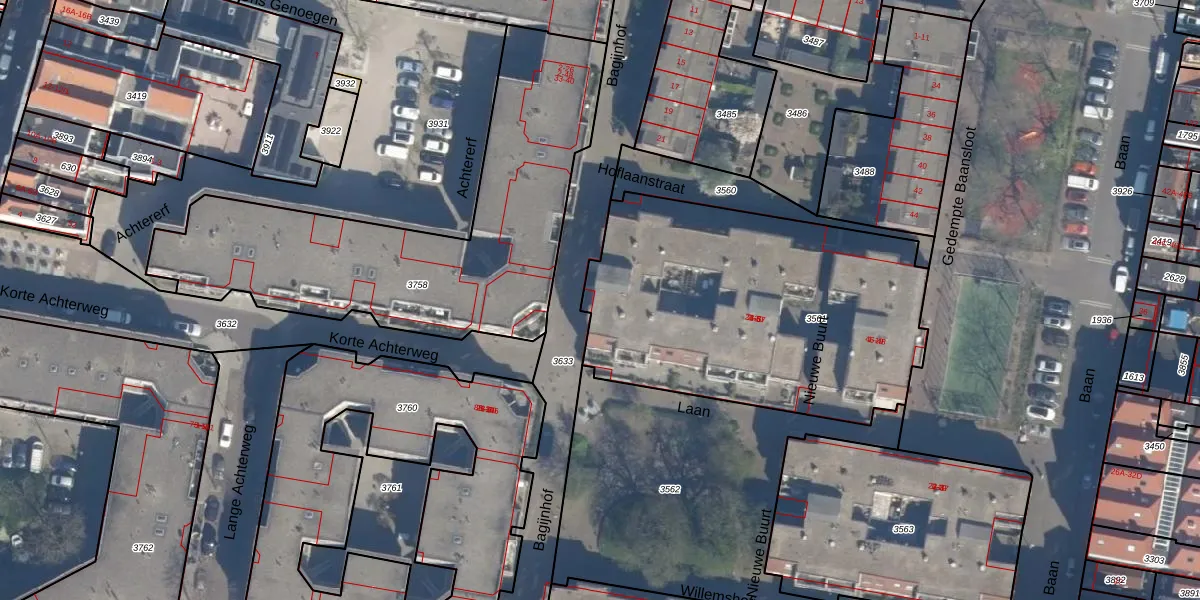 Het perceel waarop Bagijnhof 33 staat heeft een oppervlakte van 1700 m². Dit is een zeer groot perceel. De perceeloppervlakte wordt geregistreerd door het Kadaster. Gedetailleerde informatie over de maten van dit perceel kunt u vinden in het rapport Kadastrale kaart met maatvoering van Bagijnhof 33.