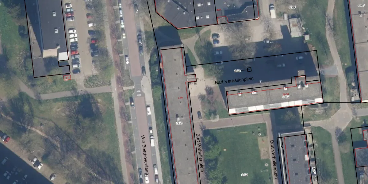 Bart Verhallenplein 39 is gelegen op kadastraal perceel SDM01Q2193. Deze kadastrale aanduiding is uniek en wordt gebruikt door het Kadaster om eigendomsrechten en andere zakelijke rechten vast te leggen. Het perceel maakt onderdeel uit van de kadastrale gemeente Schiedam.