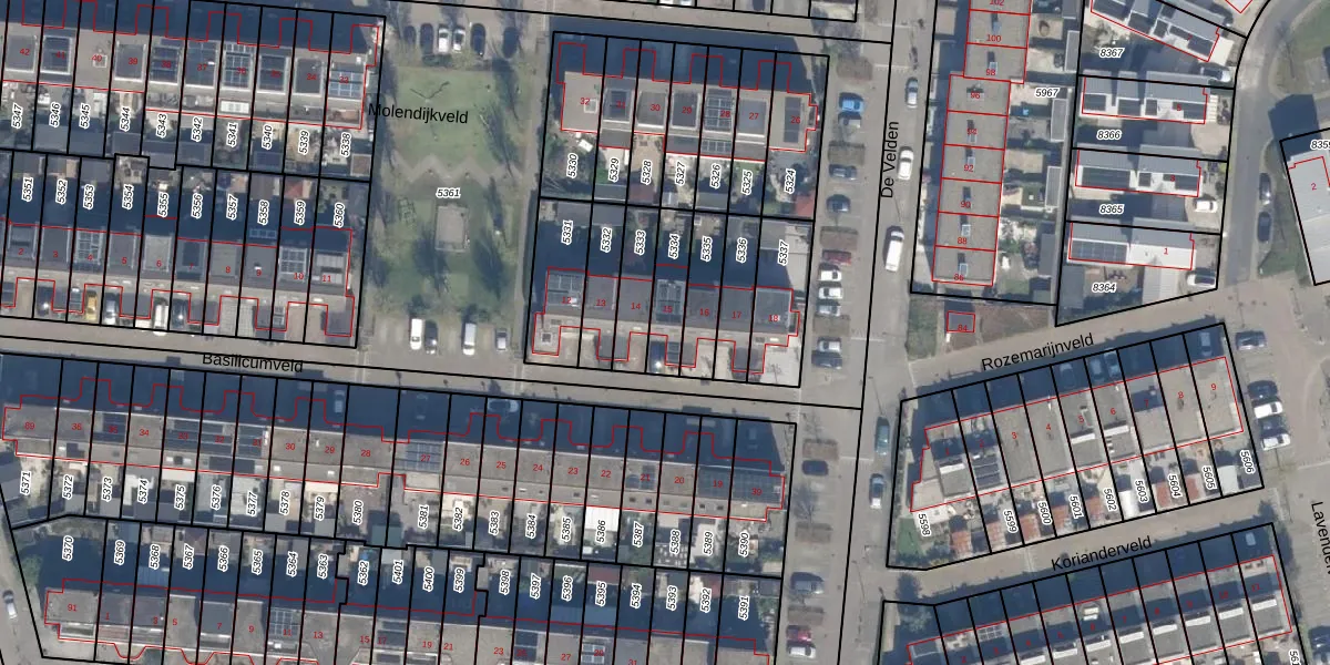 Basilicumveld 15 is gelegen op kadastraal perceel SDM01Q5334. Deze kadastrale aanduiding is uniek en wordt gebruikt door het Kadaster om eigendomsrechten en andere zakelijke rechten vast te leggen. Het perceel maakt onderdeel uit van de kadastrale gemeente Schiedam.
