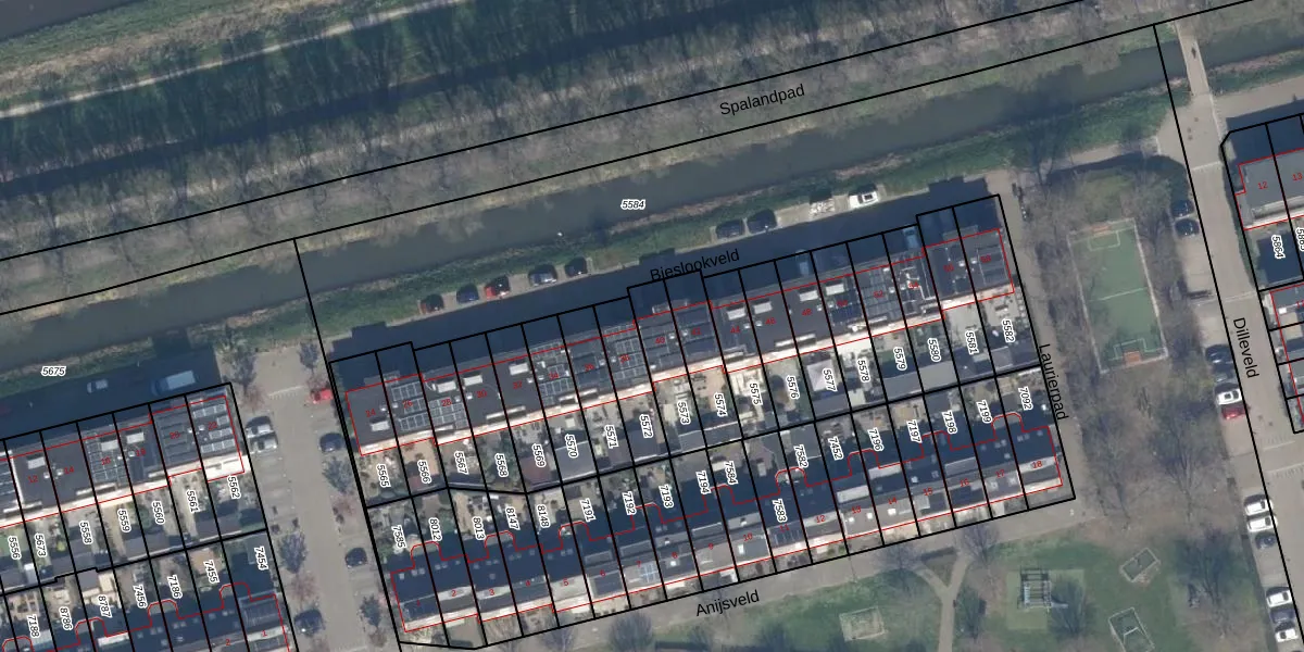 Het perceel waarop Bieslookveld 40 staat heeft een oppervlakte van 155 m². Dit is een middelgroot perceel. De perceeloppervlakte wordt geregistreerd door het Kadaster. Gedetailleerde informatie over de maten van dit perceel kunt u vinden in het rapport Kadastrale kaart met maatvoering van Bieslookveld 40.