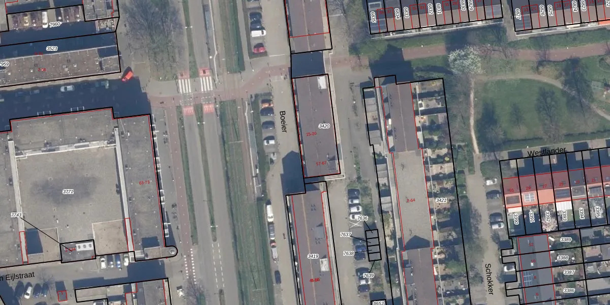 Het perceel waarop Boeier 16 staat heeft een oppervlakte van 400 m². Dit is een groot perceel. De perceeloppervlakte wordt geregistreerd door het Kadaster. Gedetailleerde informatie over de maten van dit perceel kunt u vinden in het rapport Kadastrale kaart met maatvoering van Boeier 16.