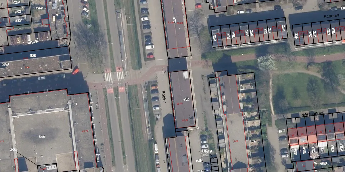 Boeier 19 is gelegen op kadastraal perceel SDM01Q3420. Deze kadastrale aanduiding is uniek en wordt gebruikt door het Kadaster om eigendomsrechten en andere zakelijke rechten vast te leggen. Het perceel maakt onderdeel uit van de kadastrale gemeente Schiedam.