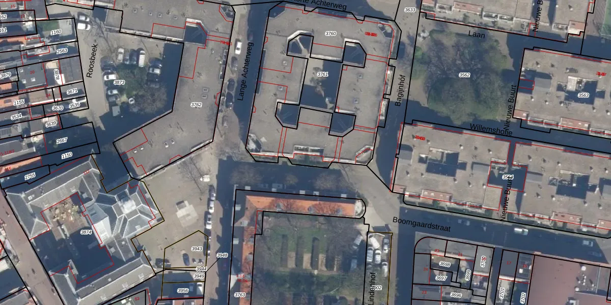 Het perceel waarop Boomgaardstraat 8 staat heeft een oppervlakte van 1727 m². Dit is een zeer groot perceel. De perceeloppervlakte wordt geregistreerd door het Kadaster. Gedetailleerde informatie over de maten van dit perceel kunt u vinden in het rapport Kadastrale kaart met maatvoering van Boomgaardstraat 8.