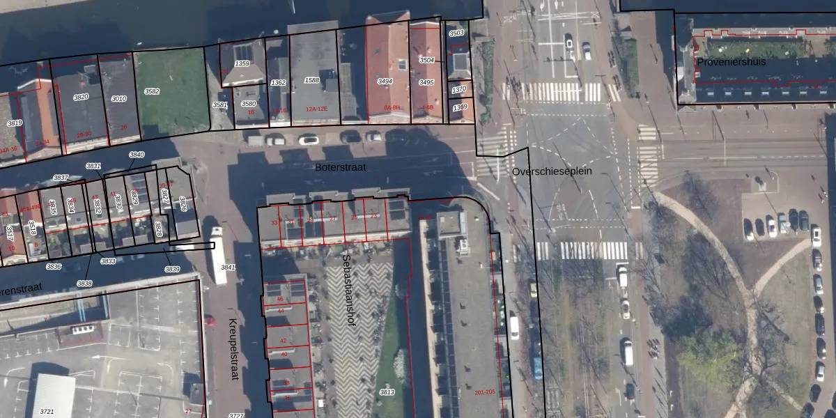 Boterstraat 17-D is gelegen op kadastraal perceel SDM01B3813. Deze kadastrale aanduiding is uniek en wordt gebruikt door het Kadaster om eigendomsrechten en andere zakelijke rechten vast te leggen. Het perceel maakt onderdeel uit van de kadastrale gemeente Schiedam.