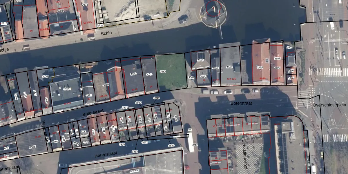 Boterstraat 24-B is gelegen op kadastraal perceel SDM01B3582. Deze kadastrale aanduiding is uniek en wordt gebruikt door het Kadaster om eigendomsrechten en andere zakelijke rechten vast te leggen. Het perceel maakt onderdeel uit van de kadastrale gemeente Schiedam.