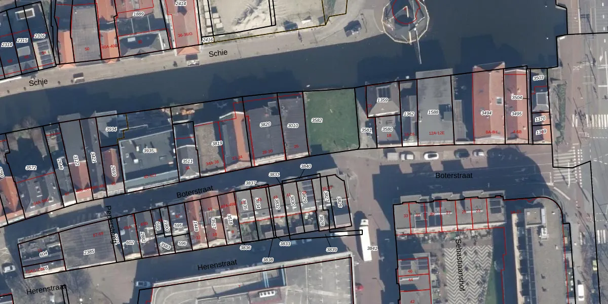 Boterstraat 26-D is gelegen op kadastraal perceel SDM01B3010. Deze kadastrale aanduiding is uniek en wordt gebruikt door het Kadaster om eigendomsrechten en andere zakelijke rechten vast te leggen. Het perceel maakt onderdeel uit van de kadastrale gemeente Schiedam.