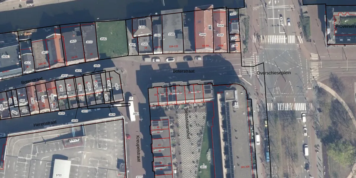 Boterstraat 27 is gelegen op kadastraal perceel SDM01B3813. Deze kadastrale aanduiding is uniek en wordt gebruikt door het Kadaster om eigendomsrechten en andere zakelijke rechten vast te leggen. Het perceel maakt onderdeel uit van de kadastrale gemeente Schiedam.