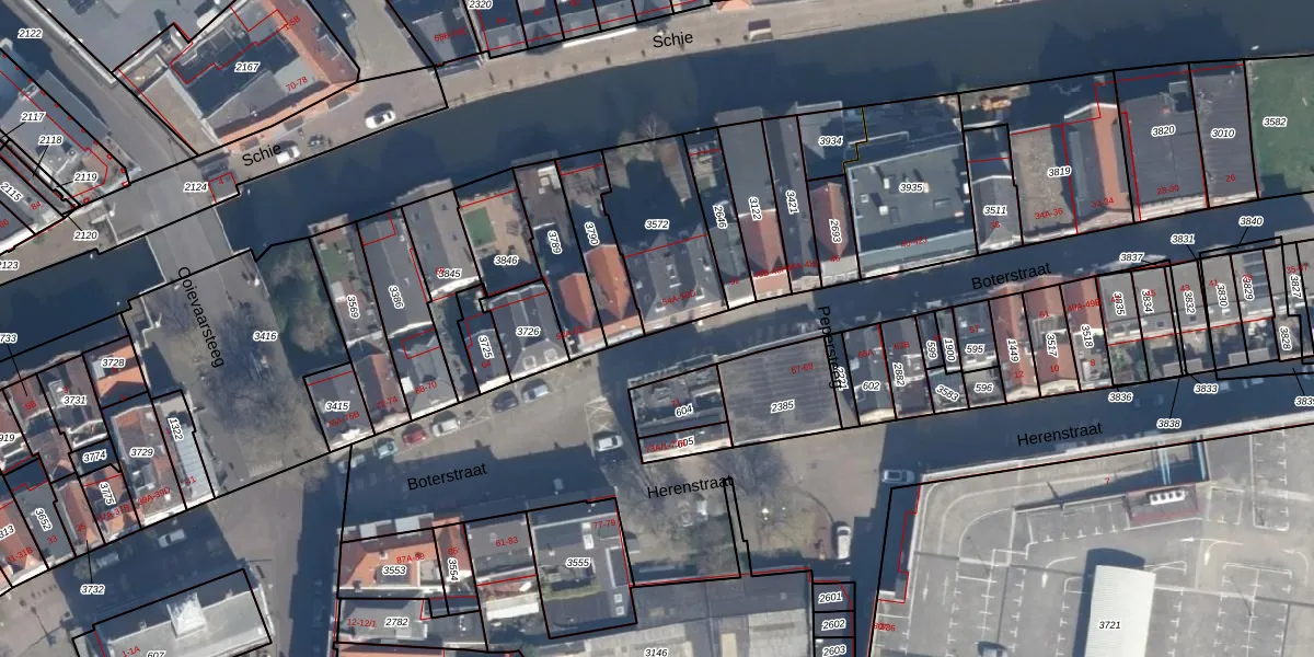 Boterstraat 56-A is gelegen op kadastraal perceel SDM01B3572. Deze kadastrale aanduiding is uniek en wordt gebruikt door het Kadaster om eigendomsrechten en andere zakelijke rechten vast te leggen. Het perceel maakt onderdeel uit van de kadastrale gemeente Schiedam.